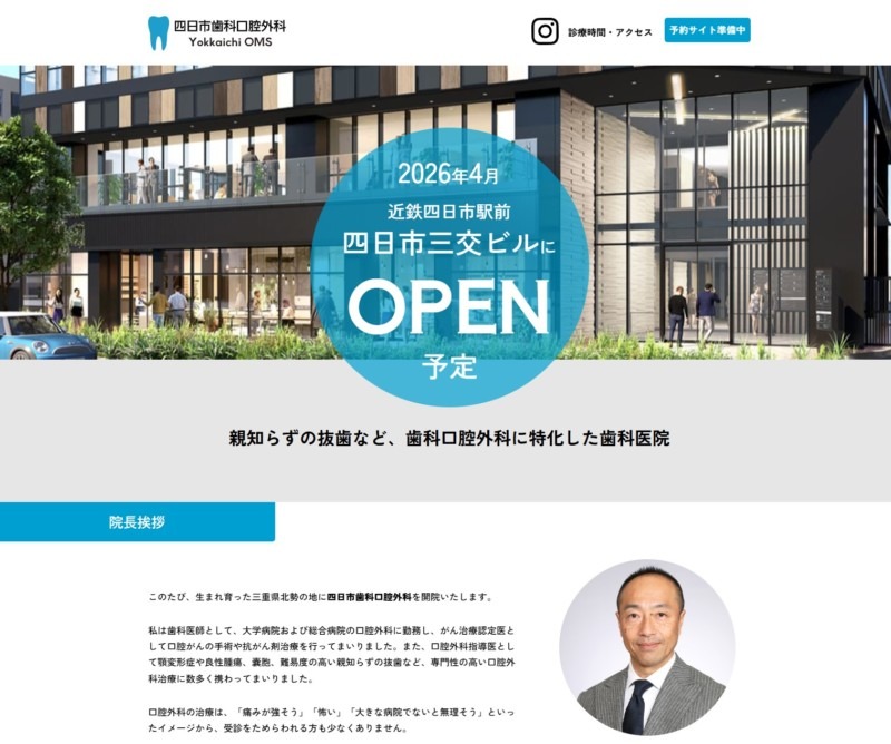 三重県四日市市に歯科医院を開院予定の「四日市歯科口腔外科」様のWEB告知サイトをデザインさせていただきました。